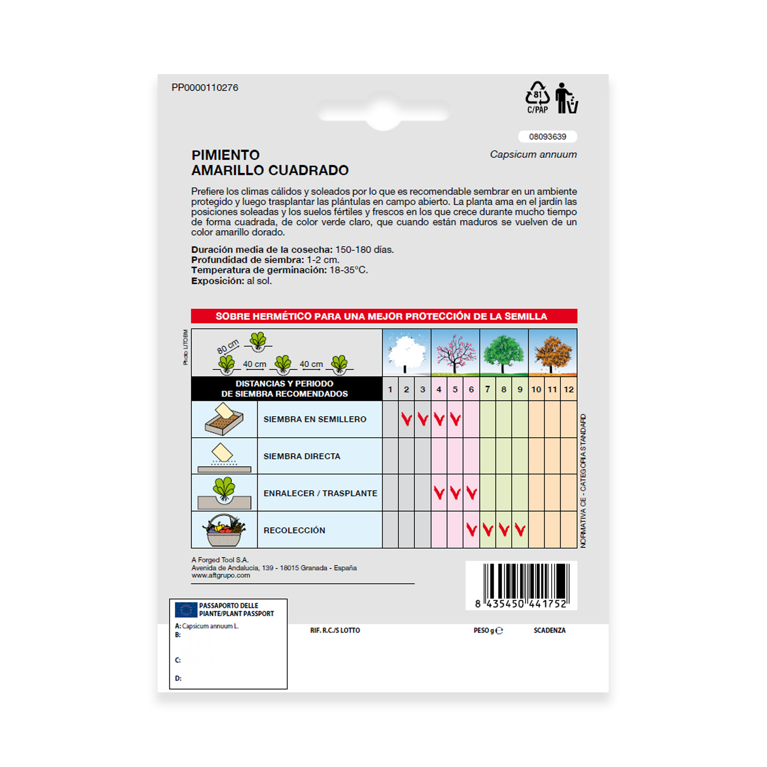 Semillas Pimiento Amarillo Cuadrado (1.5 gramos) Semillas Verduras, Horticultura, Horticola, Semillas Huerto.