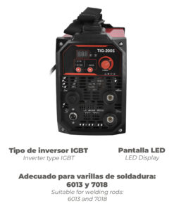 – Tipo de electrodo utilizable: rutilo, básicos, inoxidables, fundición de hierro