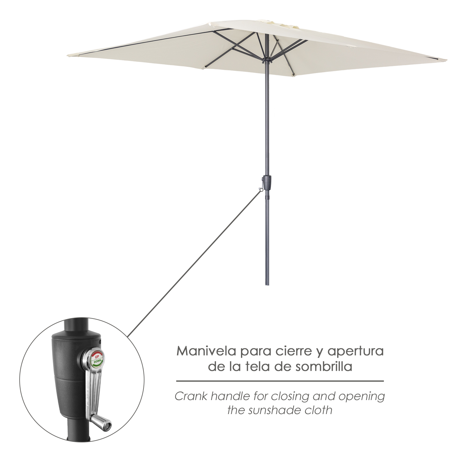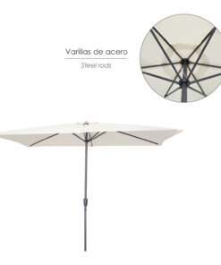 – Artículo también conocido como sombrilla rectangular balcón, parasol terraza, sombrilla rectangular, sombrilla terraza jardín, toldo rectangular, parasol manivela, sombrilla jardín, etc.