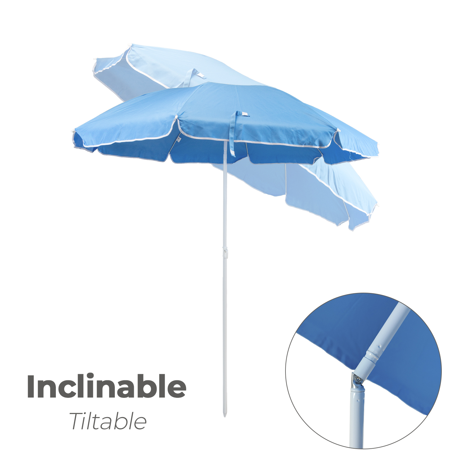 - Artículo también conocido como sombrilla playa, sombrilla, sombrilla inclinable, parasol playa, parasol jardín, etc.