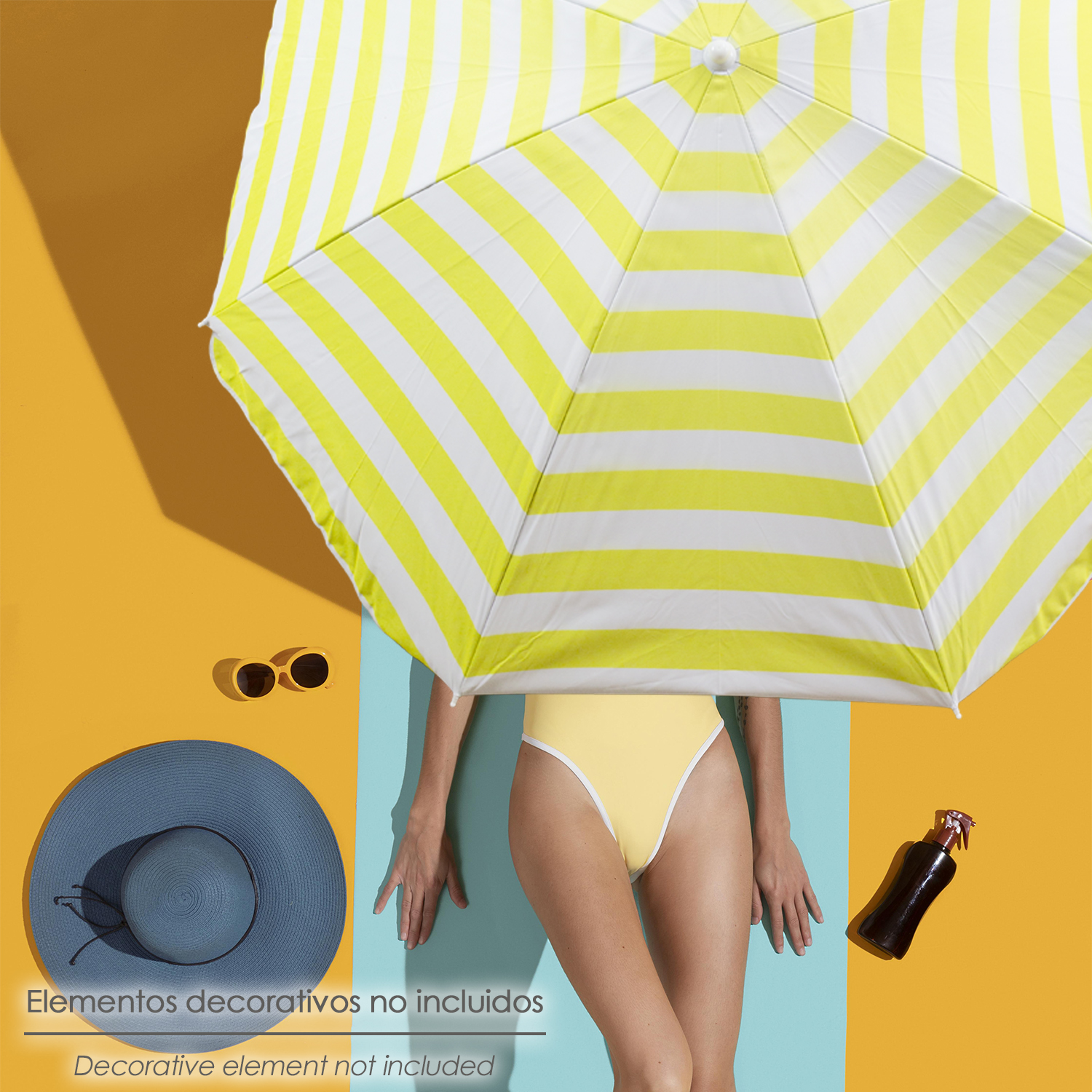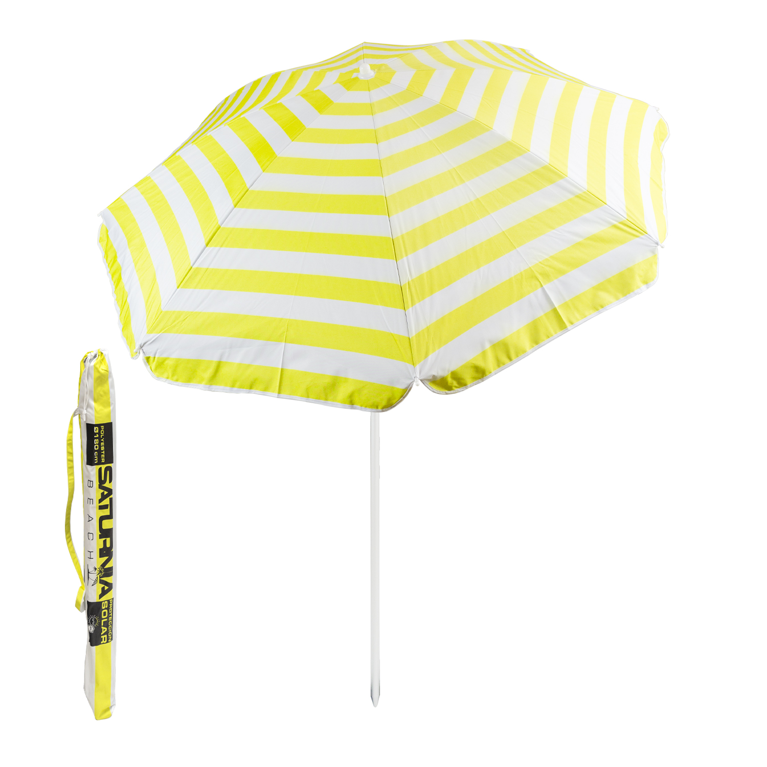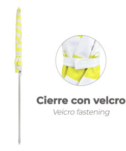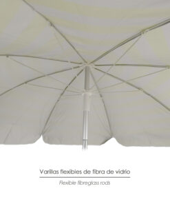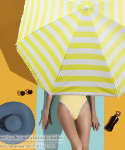 - Diámetro: Ø 180 cm. Color: amarilla y blanca. 8 Varillas flexibles de fibra de vidrio