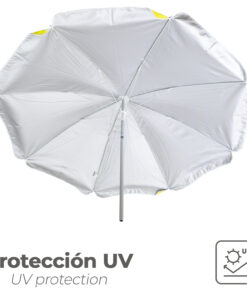 - Artículo también conocido como sombrilla playa, sombrilla, sombrilla inclinable, parasol playa, parasol jardín, etc.