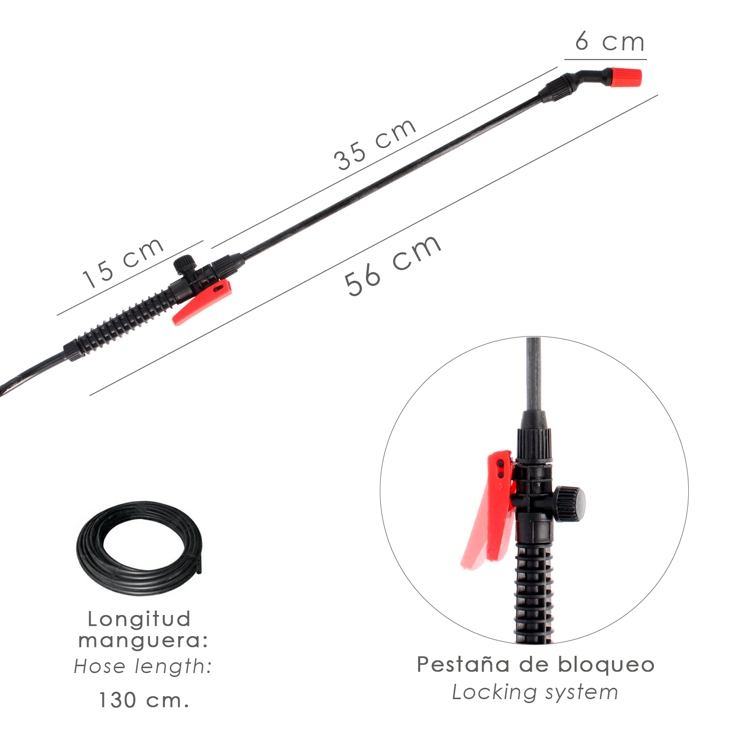 - Bomba de presión en plastico. Lanza con chorro ajustable.