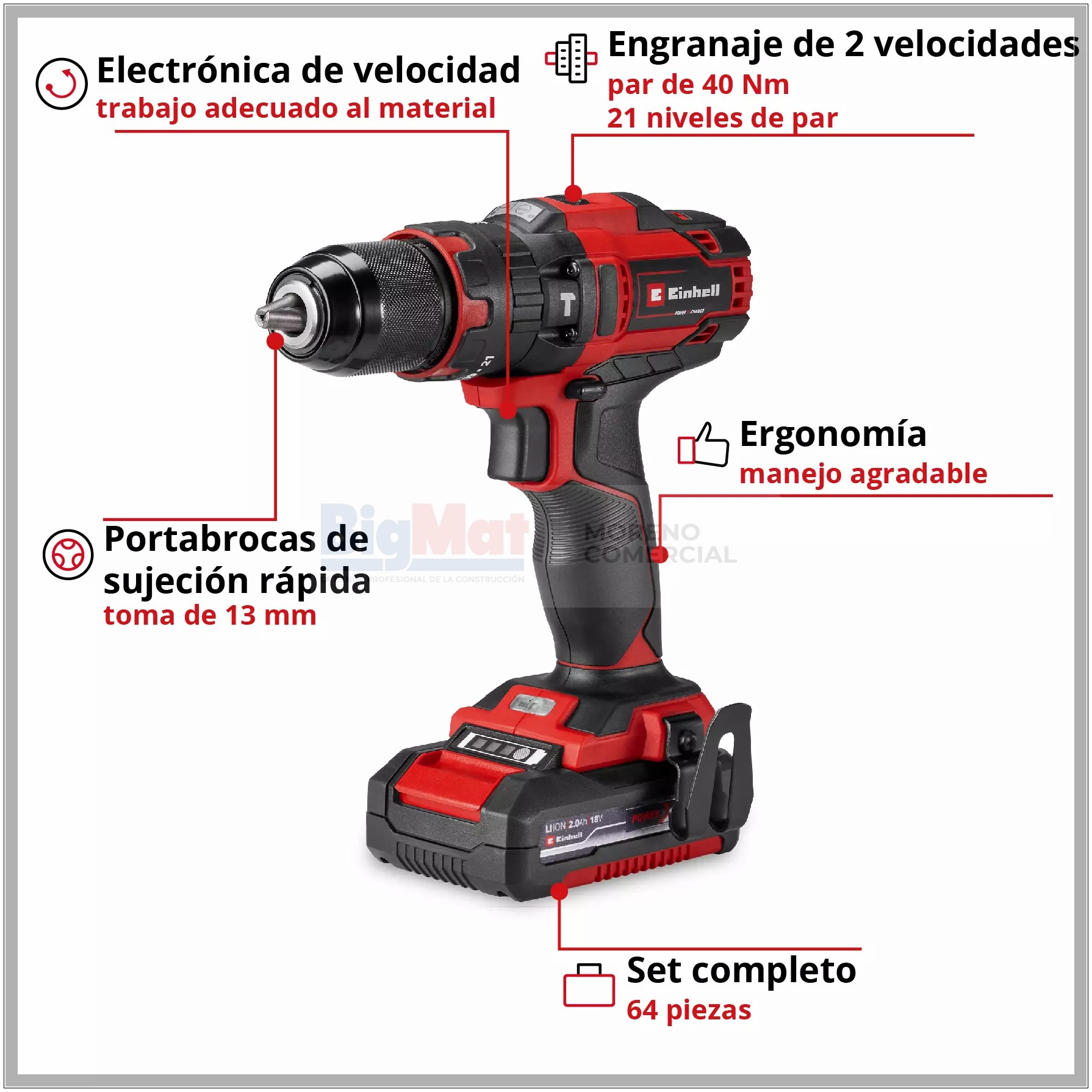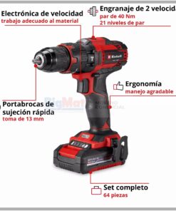 TALADRO SIN CABLE PERCUTOR TE-CD 18/40 LI-I MALETIN 64 + (1-2AH)