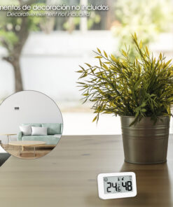 – Añade funcionalidad a tu hogar con este moderno termómetro digital, que también te proporciona información sobre la humedad del ambiente.