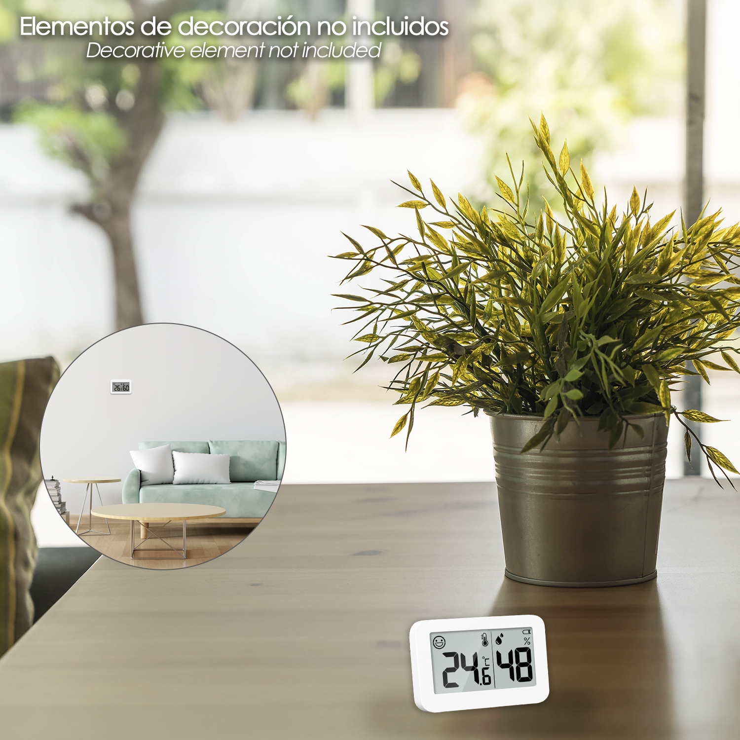 - Añade funcionalidad a tu hogar con este moderno termómetro digital, que también te proporciona información sobre la humedad del ambiente.